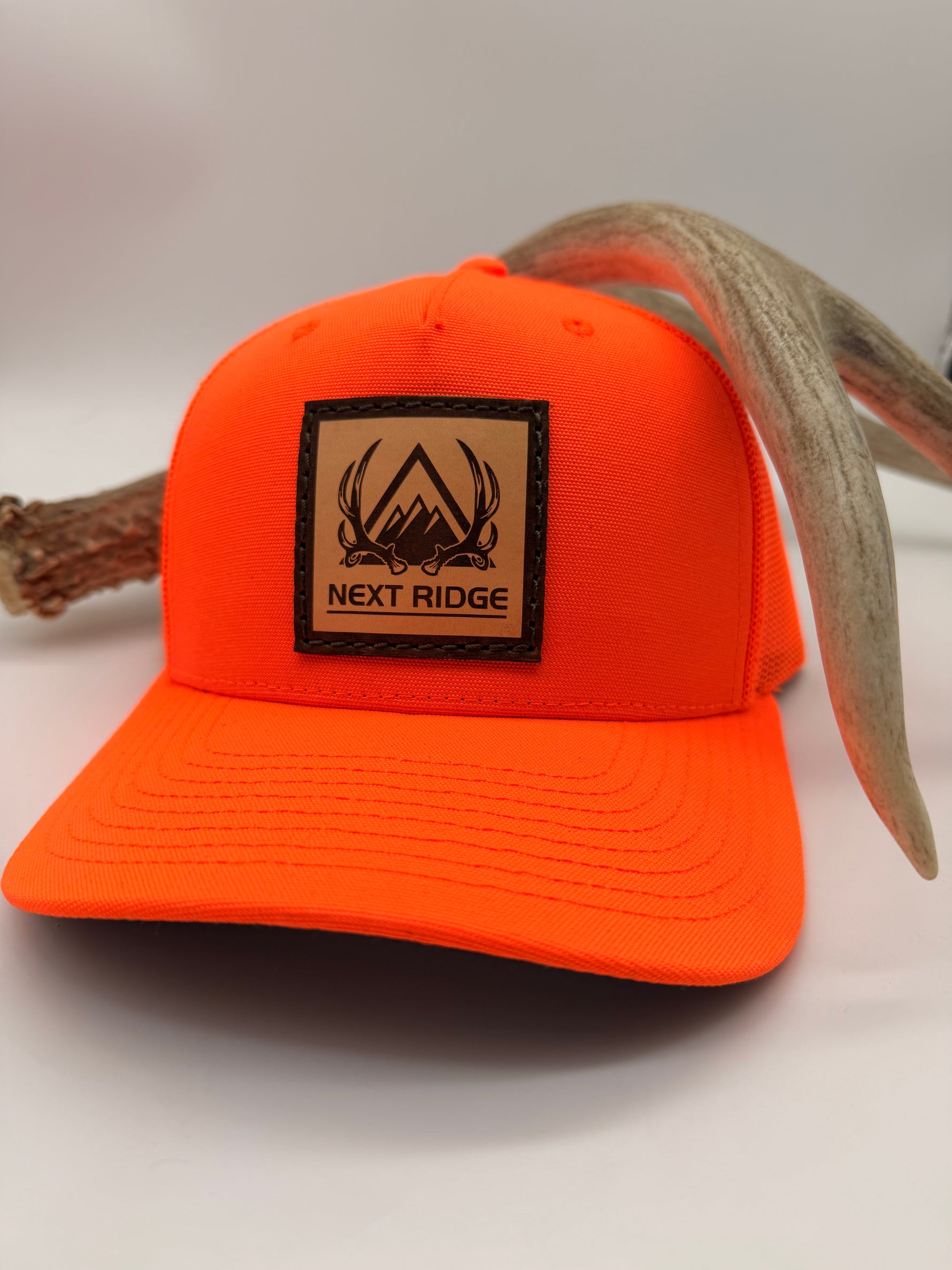 Introducing the Hunter's Blaze Orange Hat from Next Ridge Apparel, the ultimate accessory for the serious outdoorsman or woman. Made from durable, breathable materials, this hat is designed to keep you comfortable and visible during hunting season. The front features a leather Next Ridge Logo patch, adding a touch of style and a reminder of past hunts. The bright blaze orange color ensures you will be seen by other hunters and visible in the field. With a classic ball cap design and a comfortable fit, this hat is a must-have for any hunter who wants to stay safe and look good in the field. Get yours today from Next Ridge Apparel!