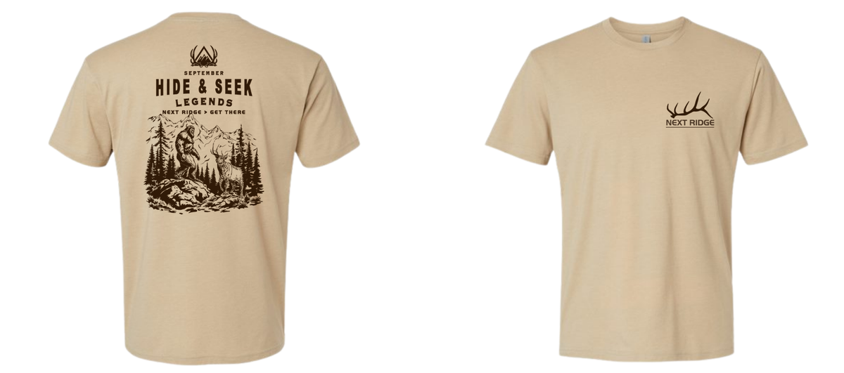 September is the season where myths meet the mountains, and you’re right in the middle of it. Our September Hide & Seek Legends Tee brings the thrill of elk season together with the mystery of the backcountry’s most famous shadow dweller.